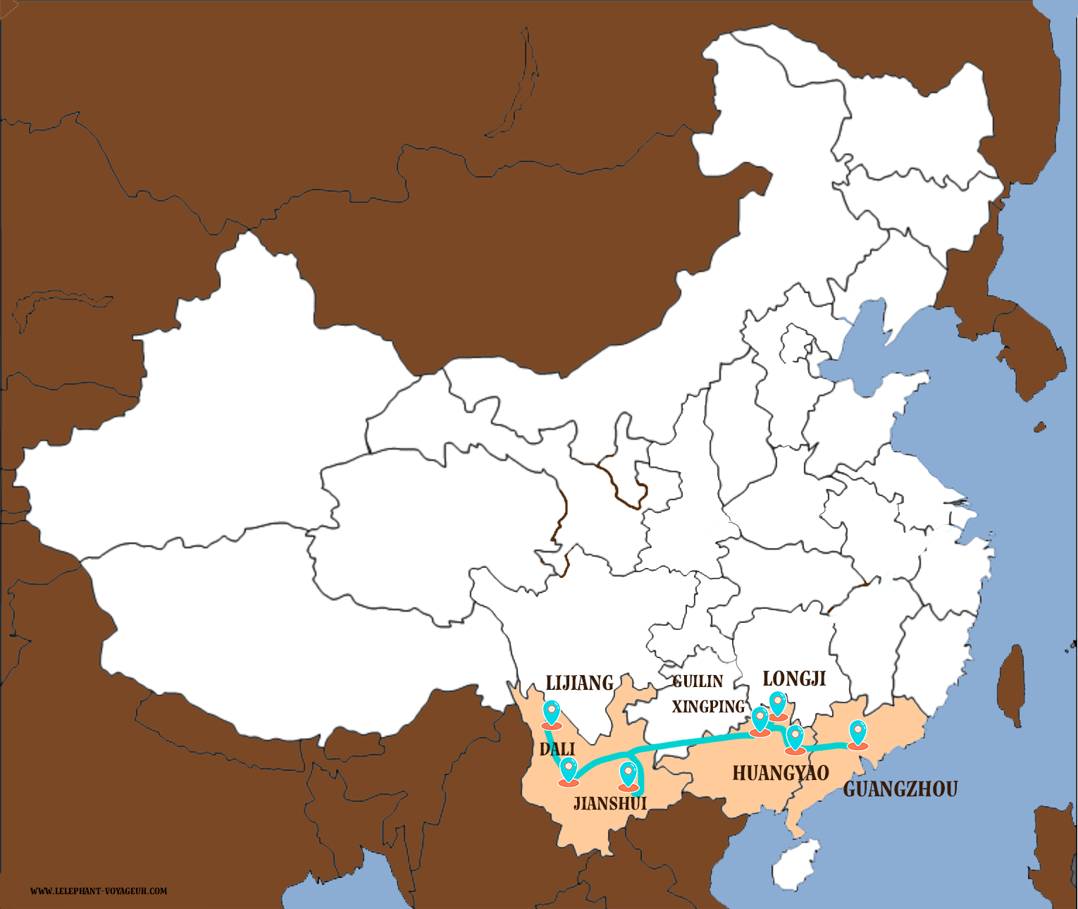 Mon avis sur cet itinéraire : c’est un de mes itinéraires préféré pour voyager en Chine, car il regroupe beaucoup de pépites cachés avec des villages plus authentiques, et nous permet de découvrir les différentes cultures issues d’ethnies.