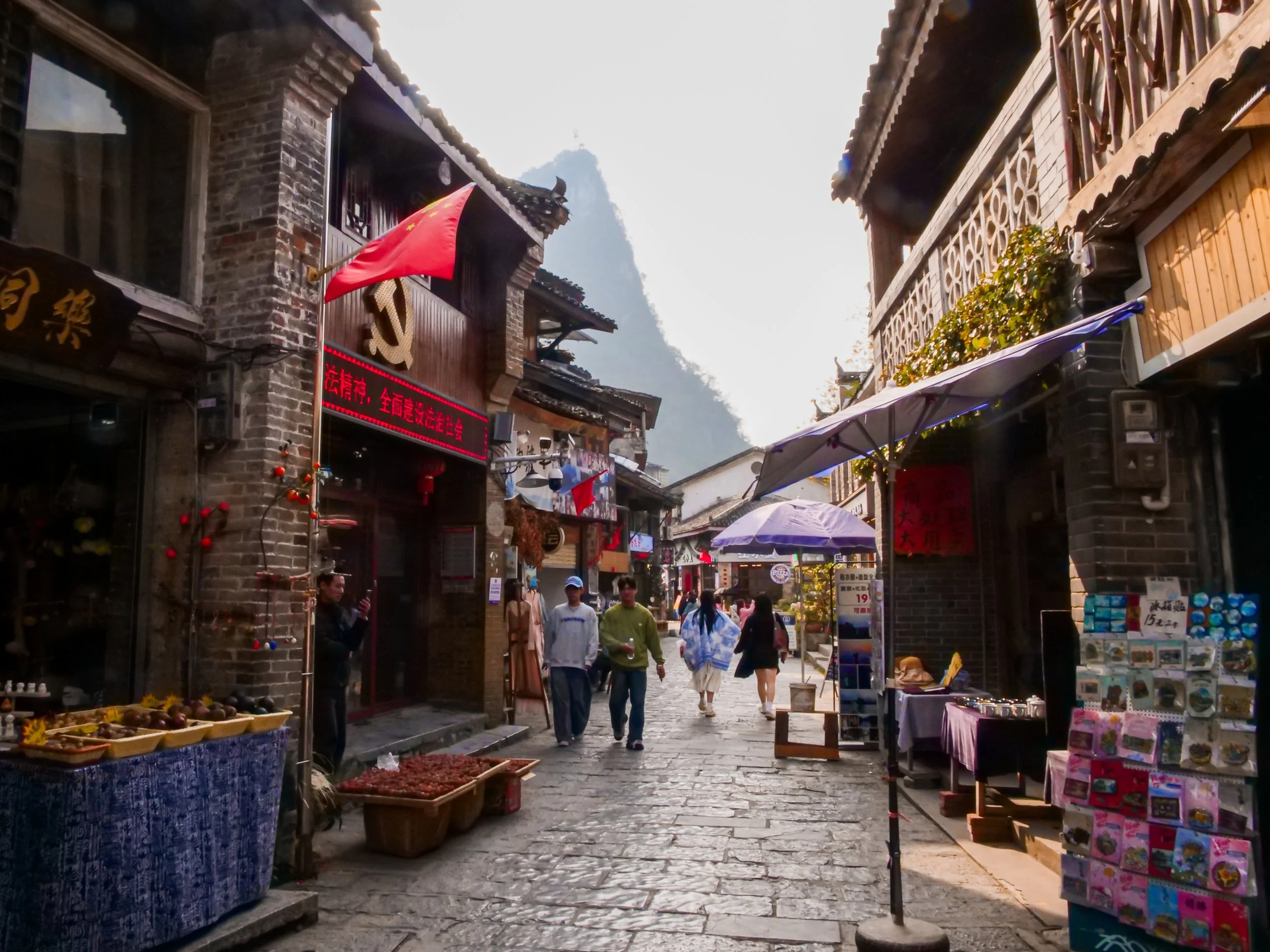Xingping est LA ville où se situe les paysages iconique du Guangxi. Elle est certes plus authentique, mais personnellement j’ai constaté que le tourisme s’était développé en 9 ans : on y trouve plus de restaurants et de cafés dans la ruelle Xingping (New Street?) qu’auparavant. Néanmoins, Yangshuo reste beaucoup plus touristique que Xingping à mon sens.