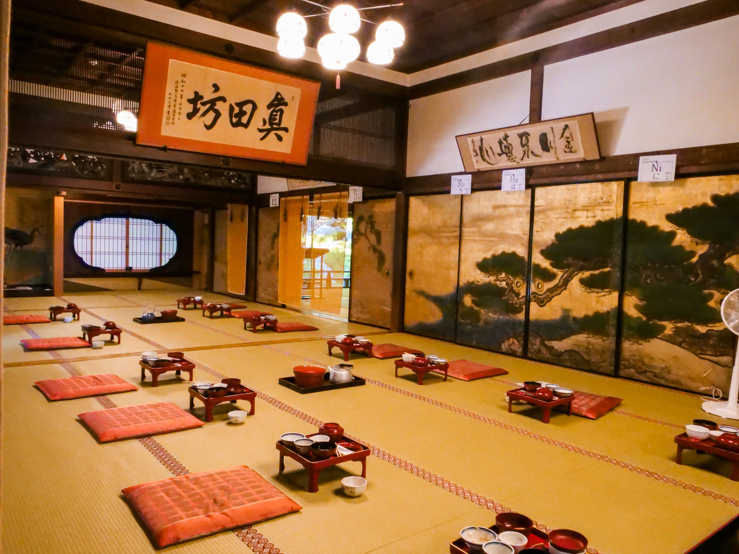Suite à cela, nous avions dîner dans une immense salle en tatami avec de sublimes portes coulissantes dorées. Le repas servis était fidèle au régime végétarien et sain des moines.