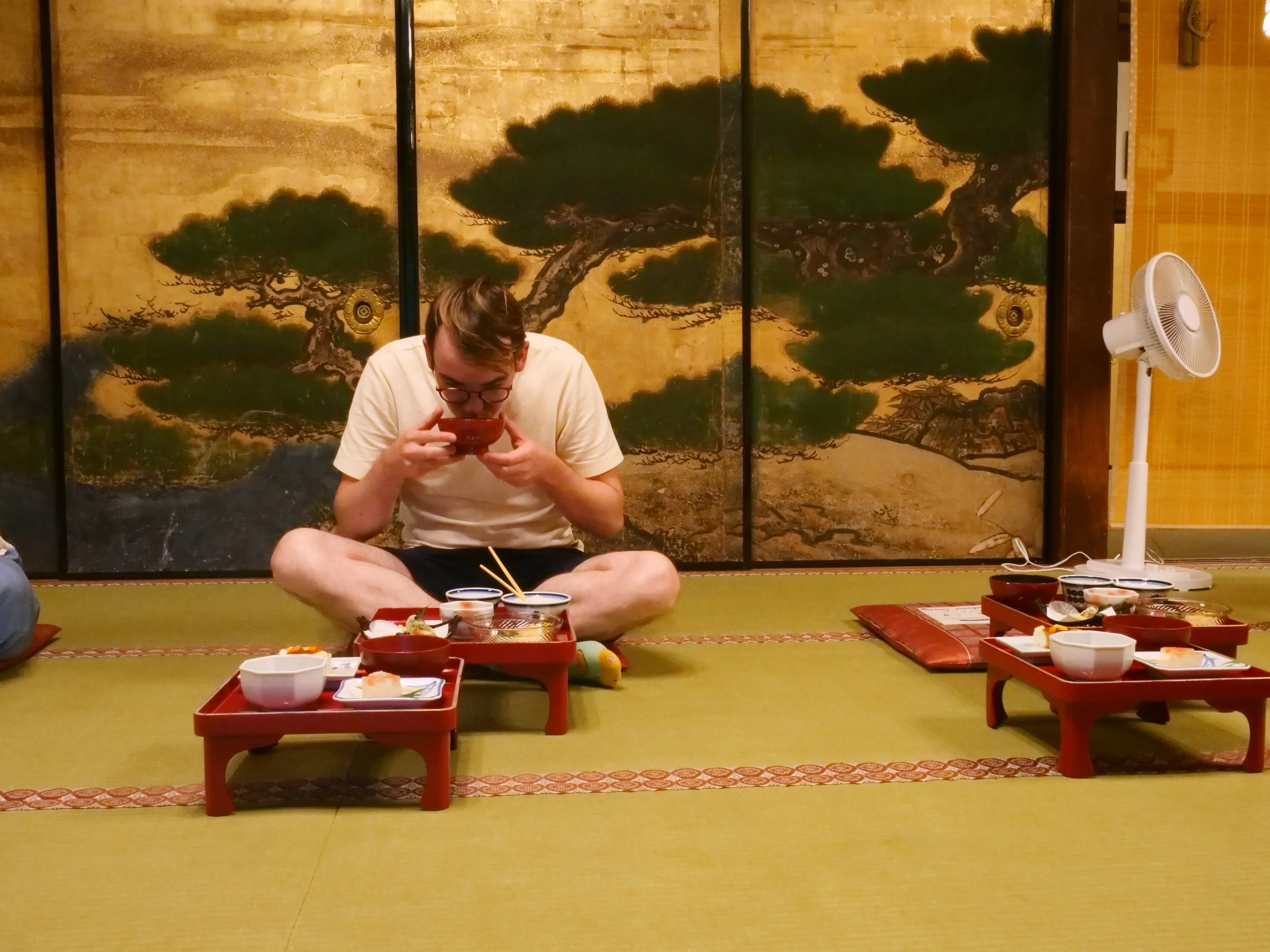 Suite à cette montée d’émotion, direction la salle de repas en tatami pour profiter de notre dernier repas partagé en commun tous ensemble : le petit déjeuner. Là aussi nous sommes sur des plats raffinés, mais c’est tout de même copieux 😄