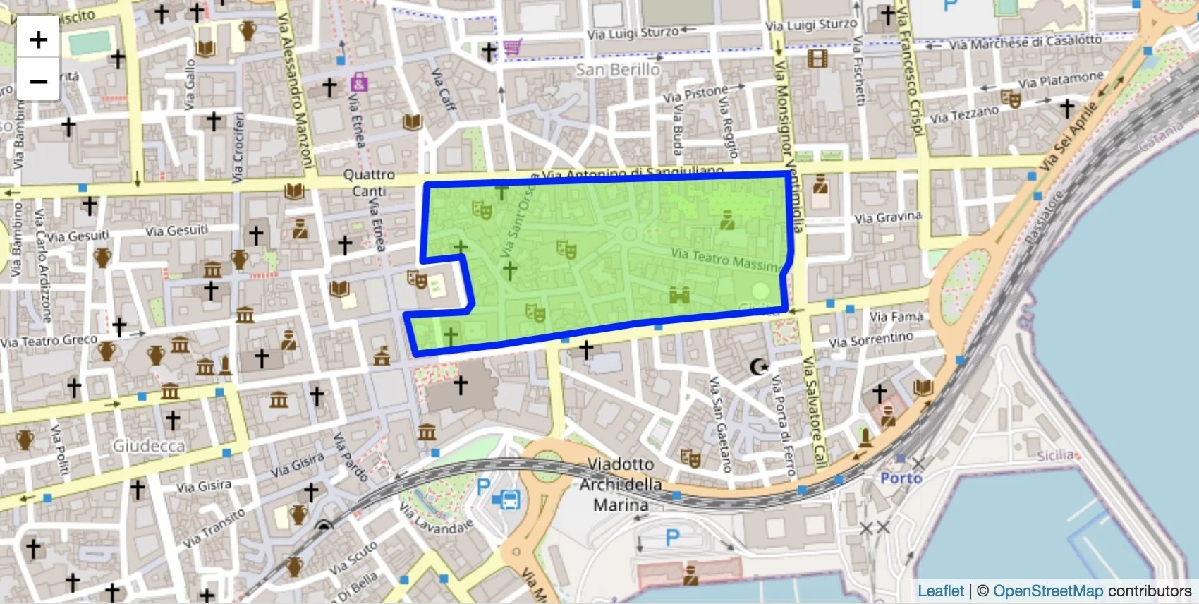 Pour l’éviter, il faut donc savoir la localiser sur Catane. Voici ci-dessous une capture d’écran de la ZTL (schéma officiel de la Commune de Catane)