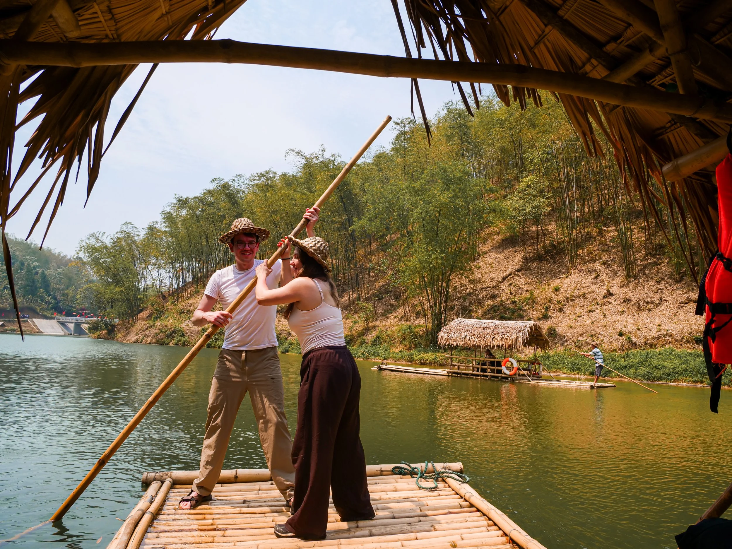 Une autre activité qui pourrait être sympa à faire à Pu Luong, et qui se trouve à proximité des roues d’eau : le Bamboo rafting ! Il s’agit d’une petite balade à vitesse très lente sur un radeau en bambou le long d’une rivière. Le radeau est manœuvré par un conducteur avec une méthode très ancienne : il doit pousser le bateau à l’aide d’un bout de bambou en le calant dans le fond de la rivière. Nous avions essayé, et je peux vous assurer que cette activité est très physique ! Nous avions navigué pendant presque 1h en aller-retour.